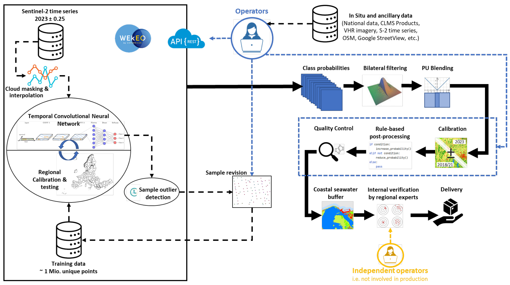 This section provides a methodological description of the production approach for the CLCplus Backbone 2023. Figure 1 shows the general workflow diagram of the production. The most important processing steps are subsequently described in detail.