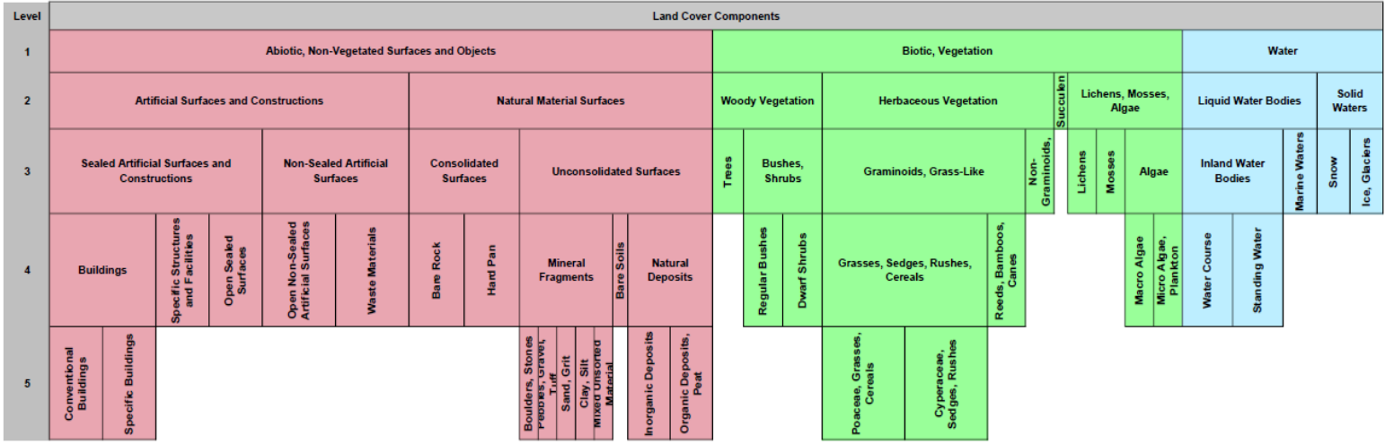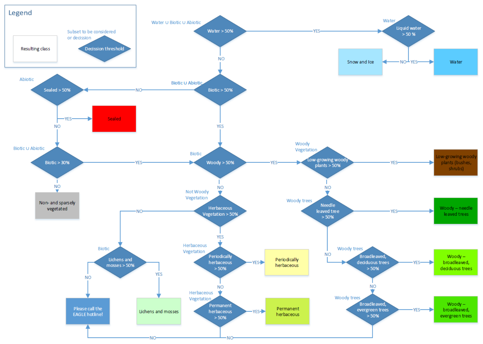 The following chapter describes the CLCplus Backbone 2023 raster layer (RAS), its technical specifications (Section 6.1.1), as well as the nomenclature (Section 6.1.2), the decision tree for the class assignment (Section 6.1.3) and provides some examples for the class assignment (Section 6.1.4).
