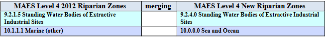 After the 2012 Riparian Zones mapping some Level 4 classes were merged. This was the applicable change matrix (currently outdated):