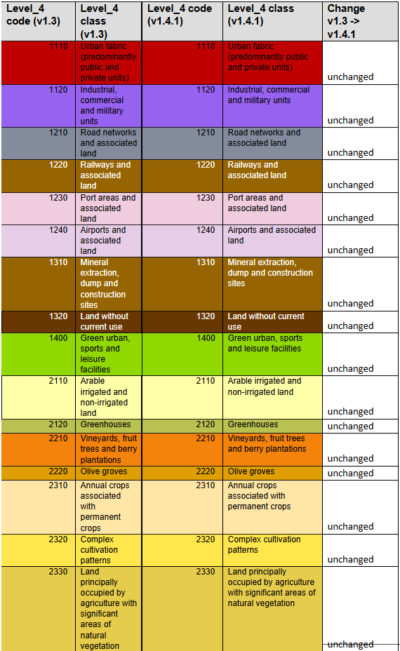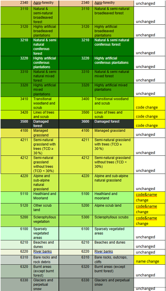 | 1.3 | 25/05/2018 | Harmonisation of Nomenclatures of common LC/LU classes between Lot2 (RZ) and Lot3 (N2K). |