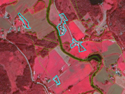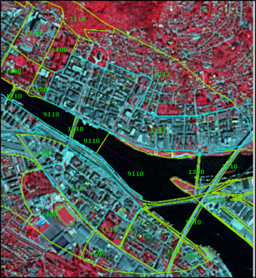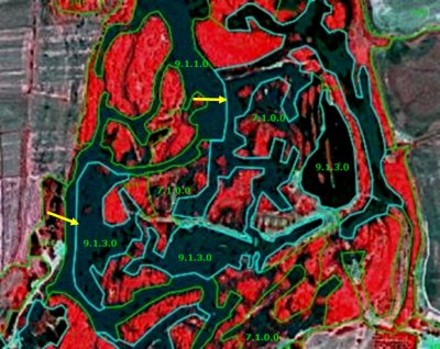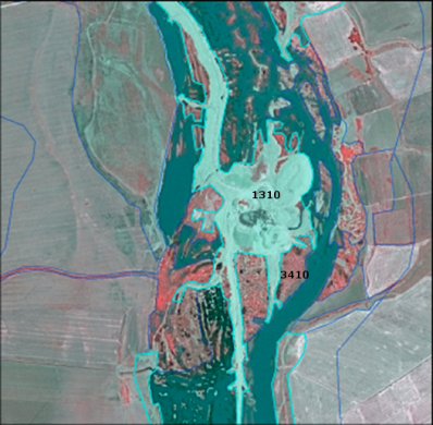Objects located at the border of the riparian zone: If an object is cut but the riparian border and the portion lying inside the RZ therefore is < 0.5 ha, this feature is mapped, if the whole object (inside and outside the RZ) amounts to ≥ 0.5 ha. However, the MMU of those divided features lying inside the RZ must have a MMU of at least ≥ 0.2 ha. Smaller objects will be generalized.