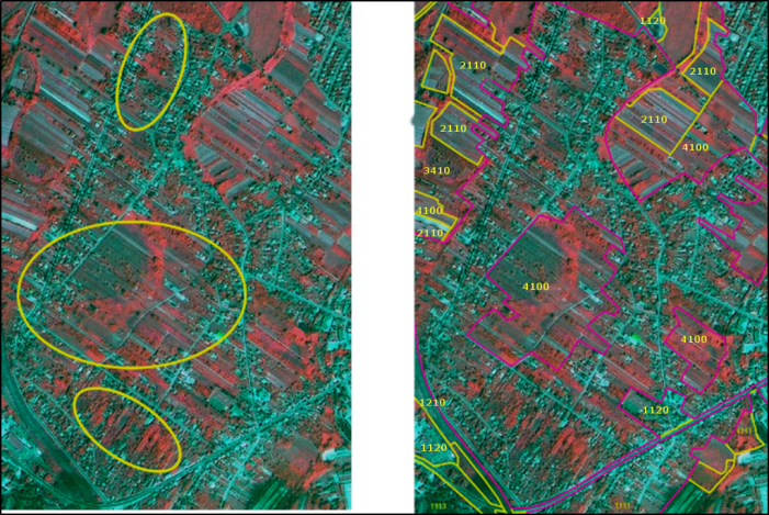 Subsequently intersection of classification results with additional data (CLC 2012/2018, HRL Imperviousness Degree, HRL Tree Cover Density, Urban Atlas 2012/2018.