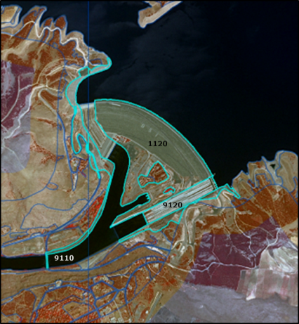 Sea area that is within a geometry classified as port area → 1.2.3.0 Port areas and associated land.