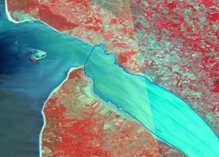Use of Transitional Waters layer (European Union Framework Directive) as indication of limits between open sea and coastal wetlands/coastal lagoons/intertidal flats.