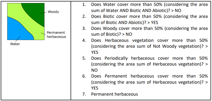 The following chapter describes the CLCplus Backbone 2023 raster layer (RAS), its technical specifications (Section 6.1.1), as well as the nomenclature (Section 6.1.2), the decision tree for the class assignment (Section 6.1.3) and provides some examples for the class assignment (Section 6.1.4).