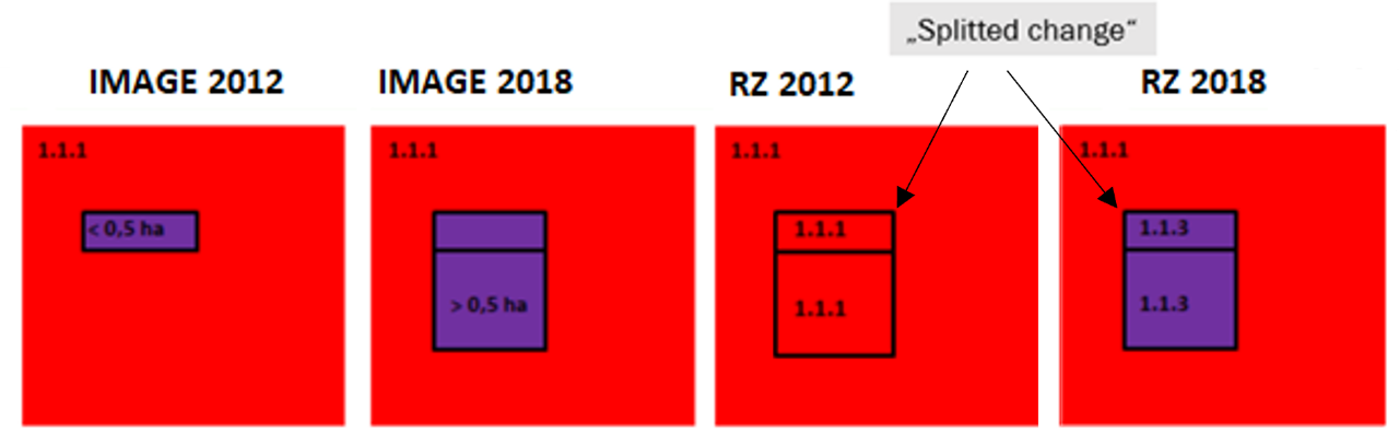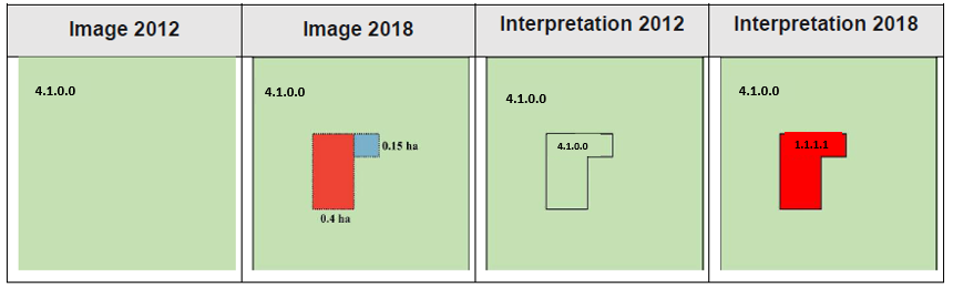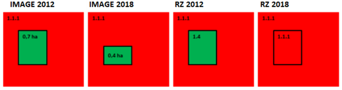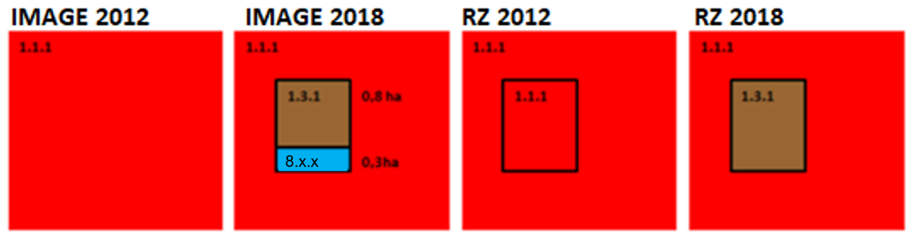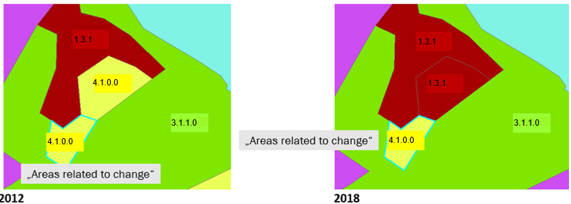 LU/LC 2012-2018 product contains fields with the thematic class corresponding to 2012, 2018 and a change code field indicating the change status for each polygon. These fields allow users to filter and obtain if desired, the specific products as separate layers: LU/LC for 2012, 2018 and a change map displaying the polygons that have changed. These products were produced in European ETRS89 Lambert Azimuthal Equal-Area (LAEA) projection. A more detailed description of the products and the methodology are provided in the next sections.